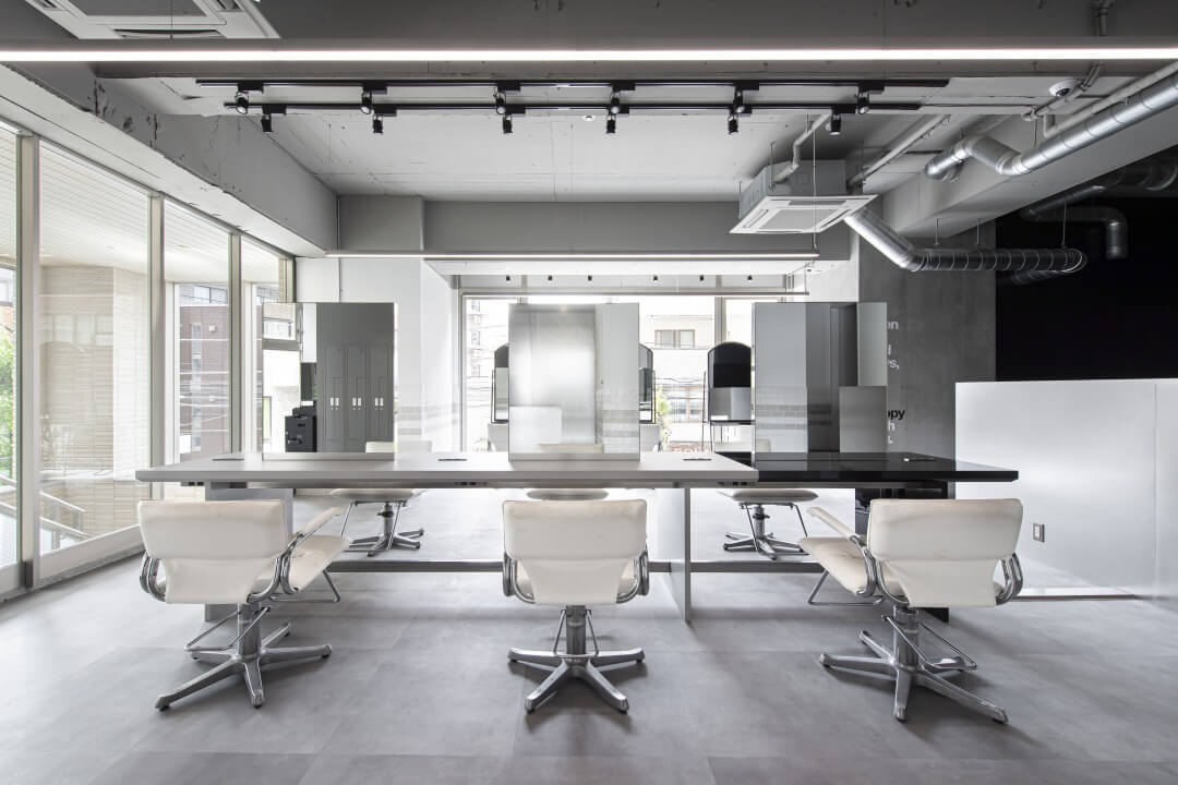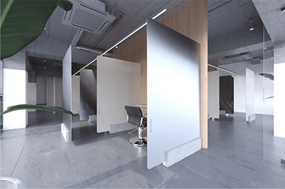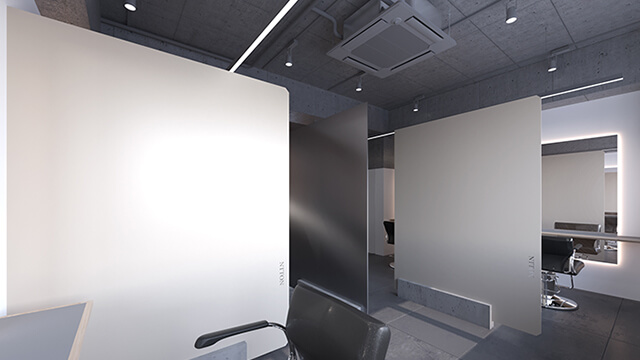立川店はひとつひとつの席がパーテーションで区切られており周りを気にせず施術を受けていただける空間となっています。国分寺店は席の間隔も広く、プライベート感覚の高いセット面になっているほか、シンプルで意心地のいい空間となっています。
